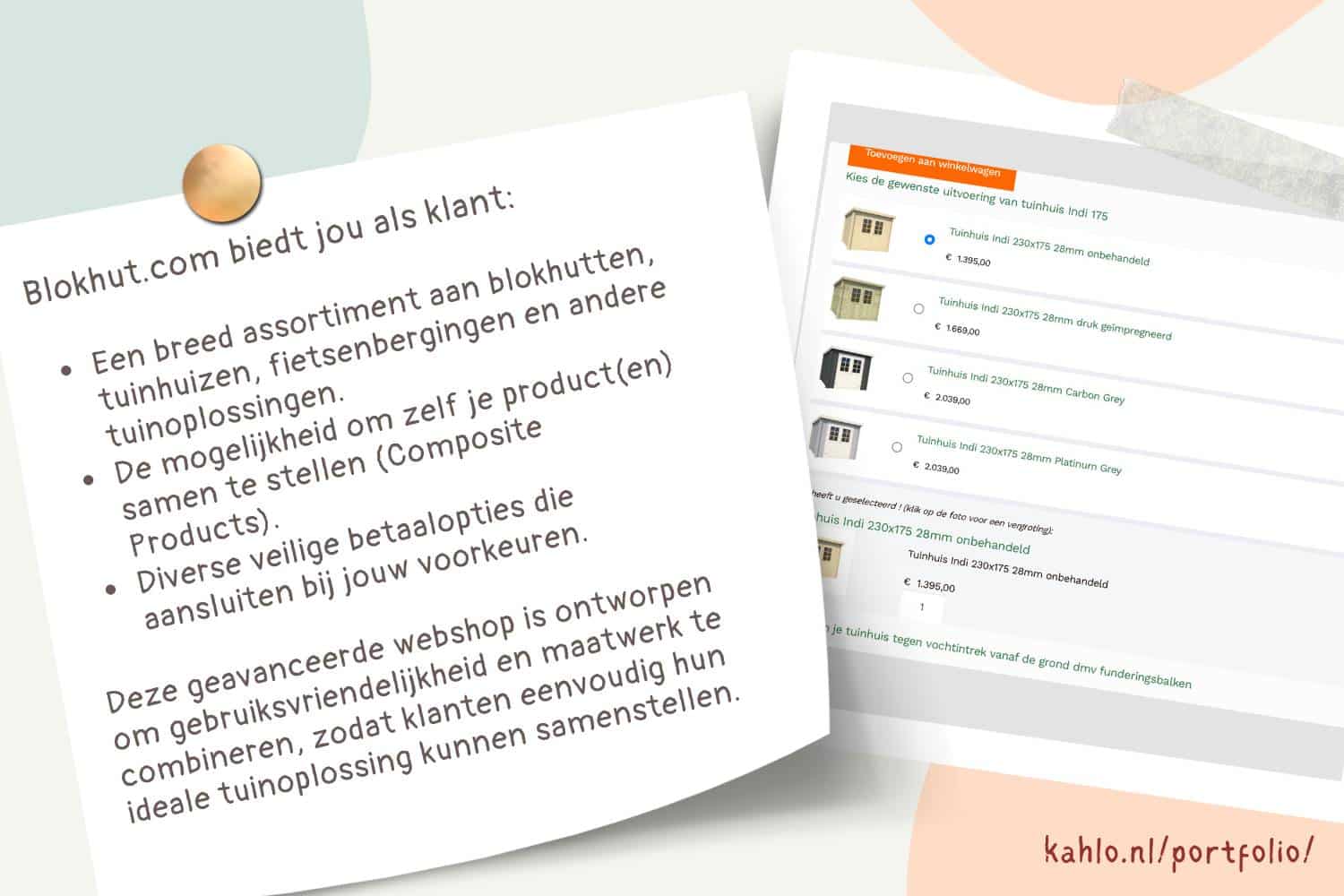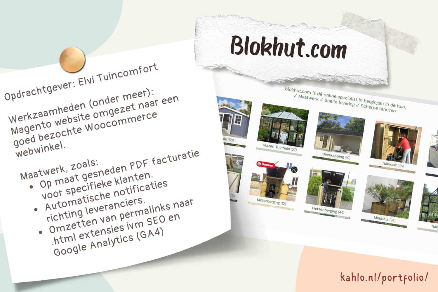 In die periode had ik al eerder een ‘Woocommerce’ webshop voor Wim ontwikkeld, en die beviel zo goed dat zij mij vroegen om dit ook blokhut.com mogelijk te maken. Deze oplossing paste niet alleen beter bij hun behoeften en was eenvoudiger in het dagelijks beheer, maar bood ook meer flexibiliteit om de webshop in de toekomst uit te breiden of aan te passen aan nieuwe wensen van hun klanten.