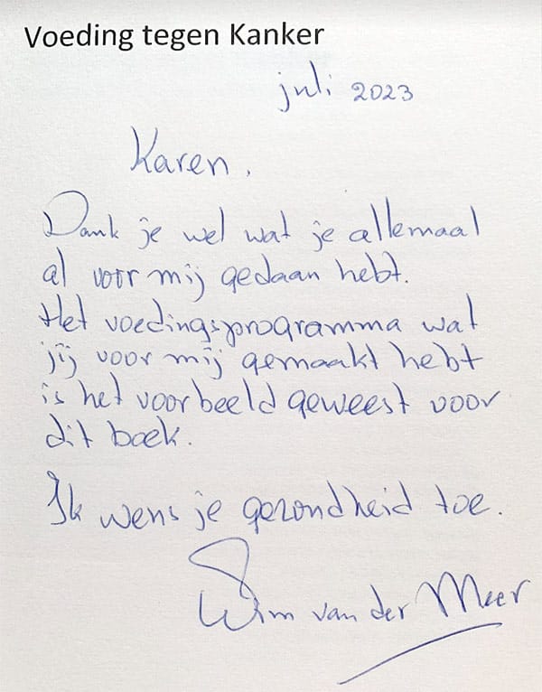 In 2020 publiceerde Wim zijn tweede boek ‘Voeding tegen Kanker’. Daarin schreef hij deze persoonlijke boodschap.